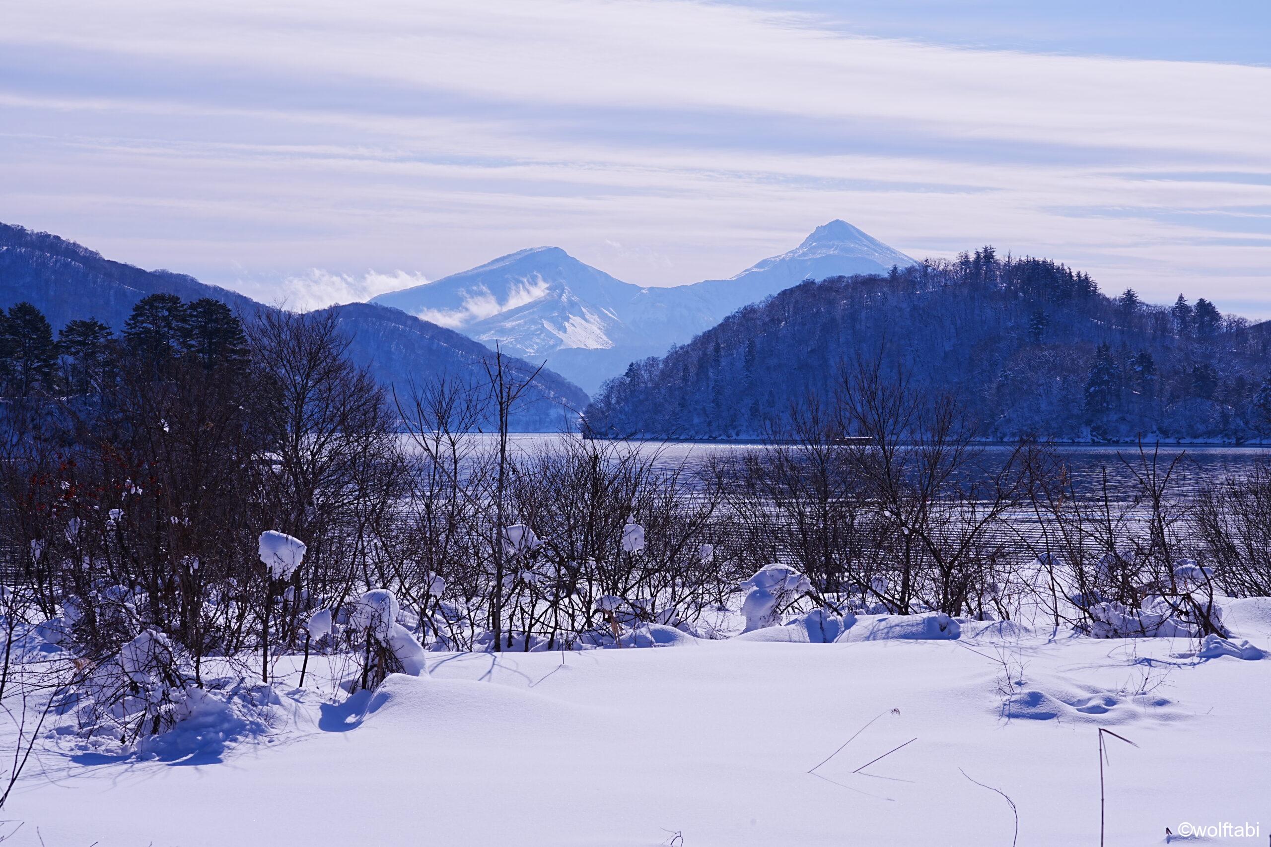 桧原湖は湖畔沿いの見晴らし箇所がほとんど雪が積もって駐車する場所がありませんでした。折角の綺麗な景色でしたが、撮影には一苦労しました。