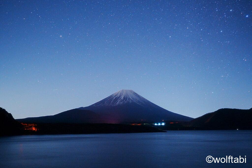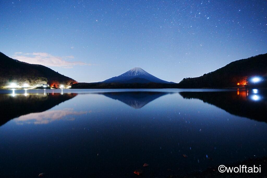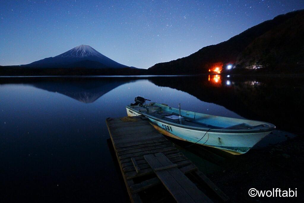 精進湖の方が湖畔まで行けるので、撮影はし易そうでしたが街灯や車のライトの光害は多い気がします。ただボートなどと上手く合わせて撮影すると面白いかもしれません。