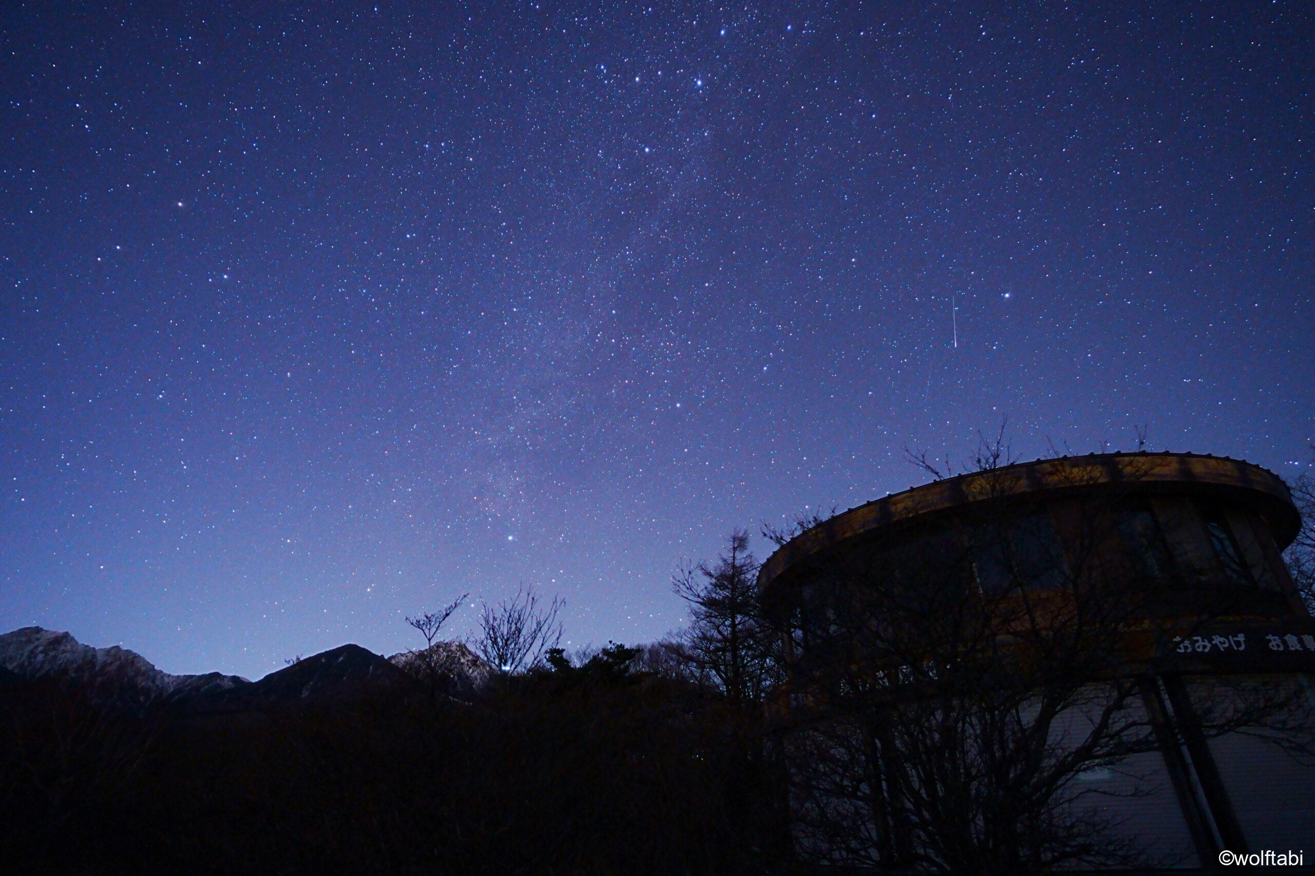 連日の星空撮影。前夜の山梨県(本栖湖・精進湖)辺りは雲がかかりそうだったので北へ前回と同じ場所(八ヶ岳ふれあい公園)に行くも池は凍結。撮影には微妙と判断して「美しの森」へ移動してみました。
